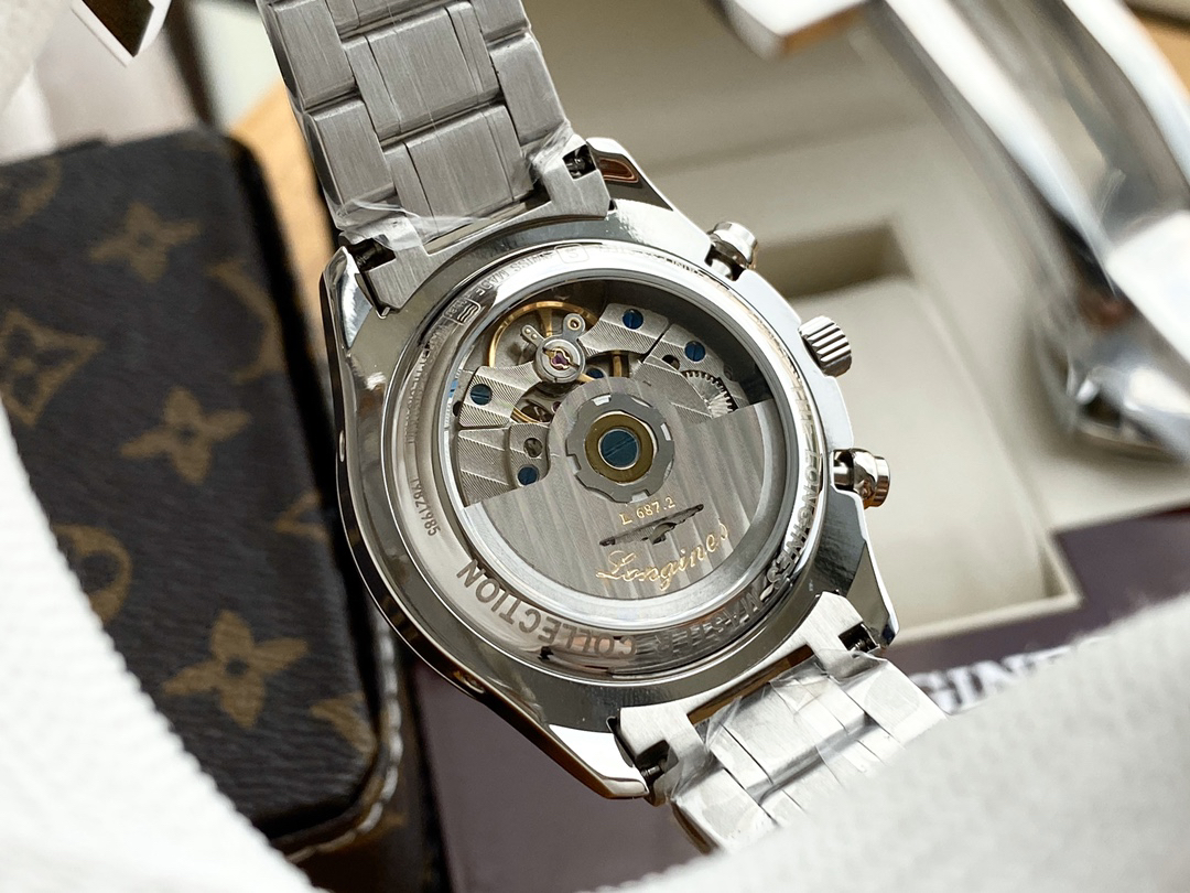 Chronograph Functions: Central seconds hand rotates clockwise, 30-minute counter at 12 o'clock, 12-hour counter at 6 o'clock