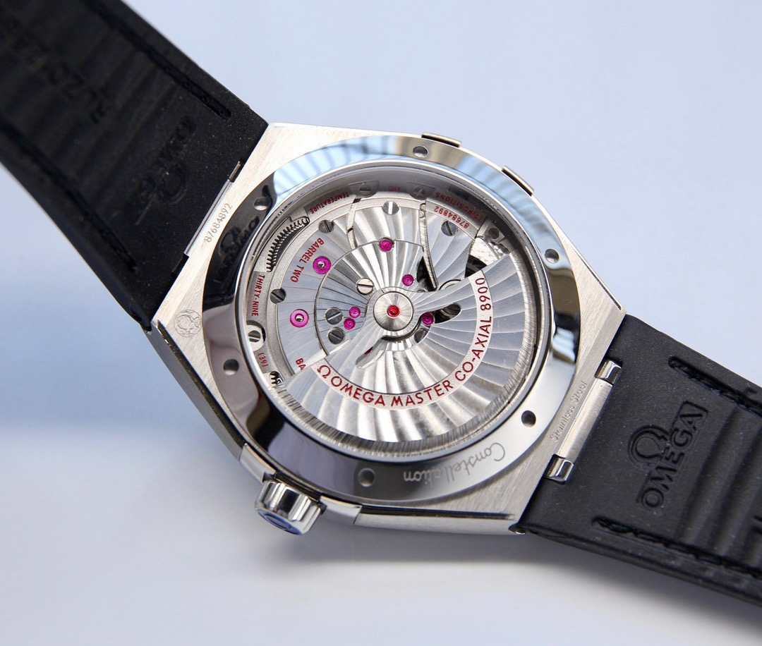 6⃣️ Equipped with the 8900/8901 black oiled coaxial Master Chronometer movement, featuring scratch-resistant sapphire crystal on both the front and back, ensuring a clear view of the dial and movement's beauty;