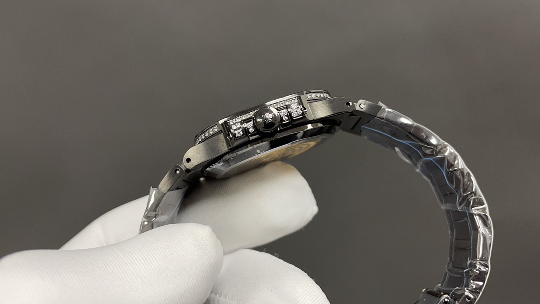 Bracelet: 1,729 diamonds. The watch's brilliance is enhanced by the rare "snowflake setting" technique, which involves setting and securing diamonds of varying sizes to minimize the traces of precious metal previously used.