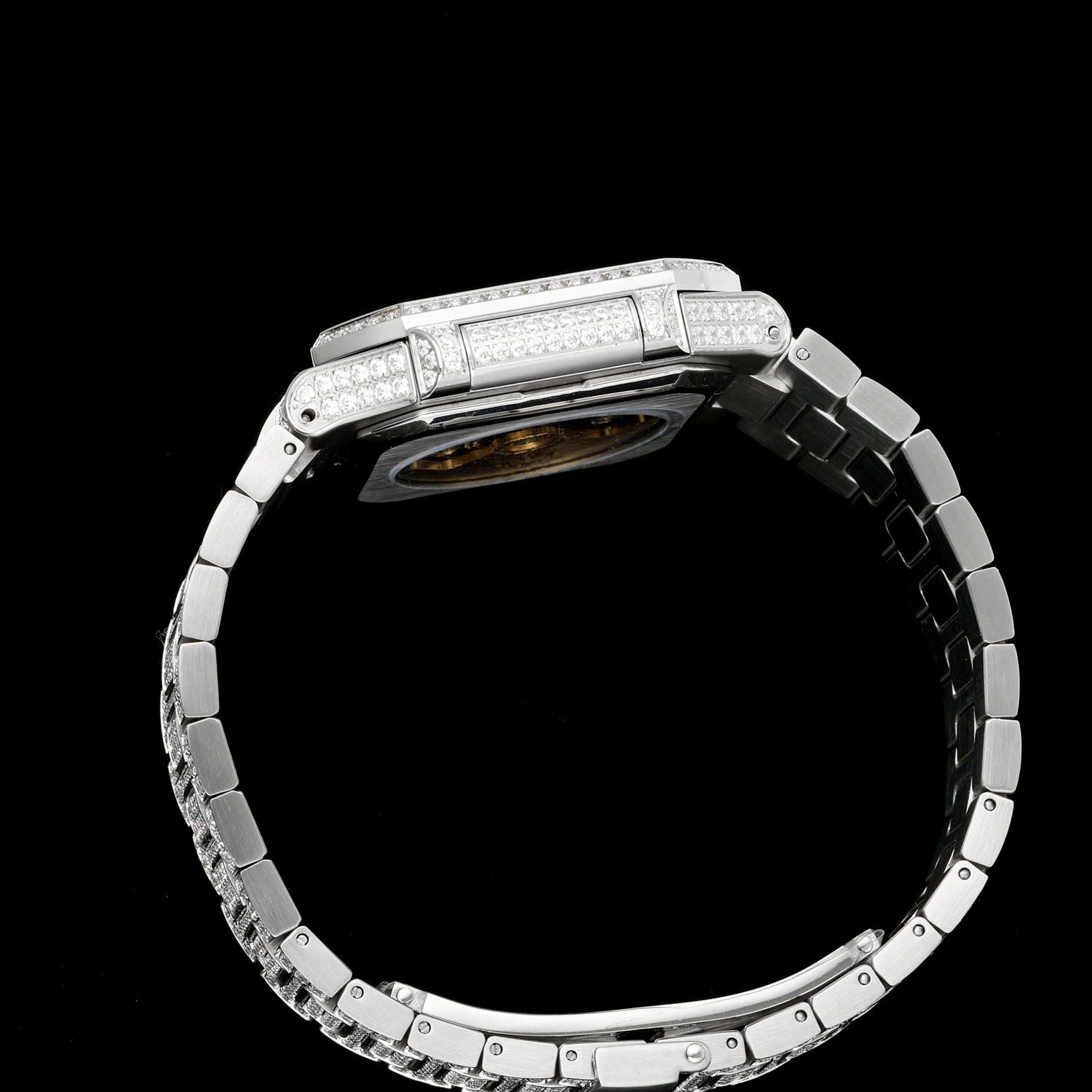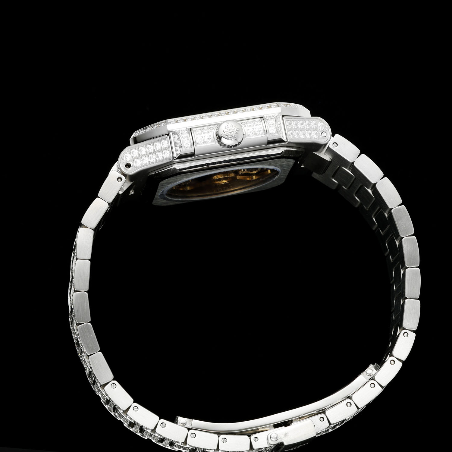 Meticulous attention to both appearance and performance has been paid to the perfectly controlled thickness of the watch head. Newly upgraded, this luxurious Patek Philippe watch, with its unique and captivating design, is a true testament to impeccable craftsmanship and a symbol of status.