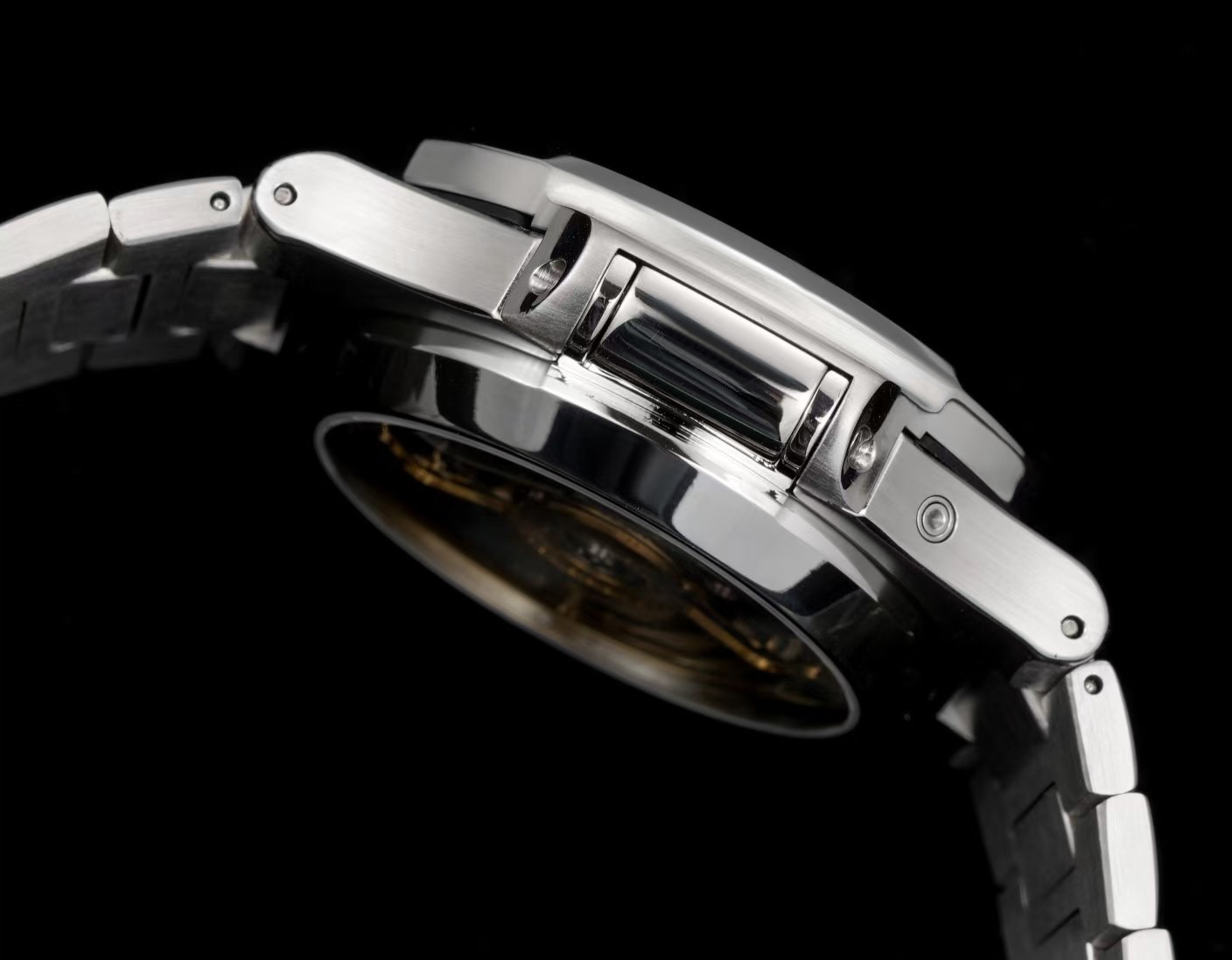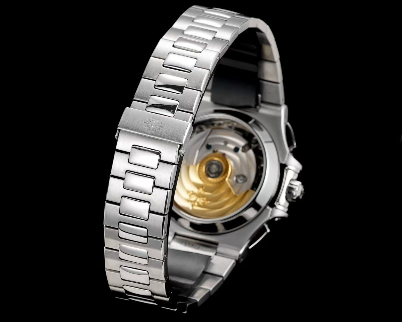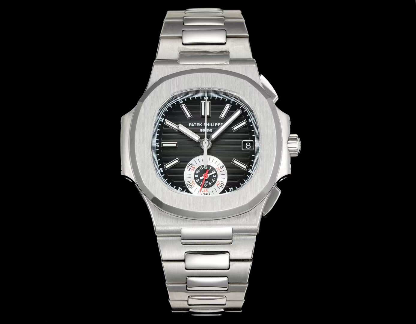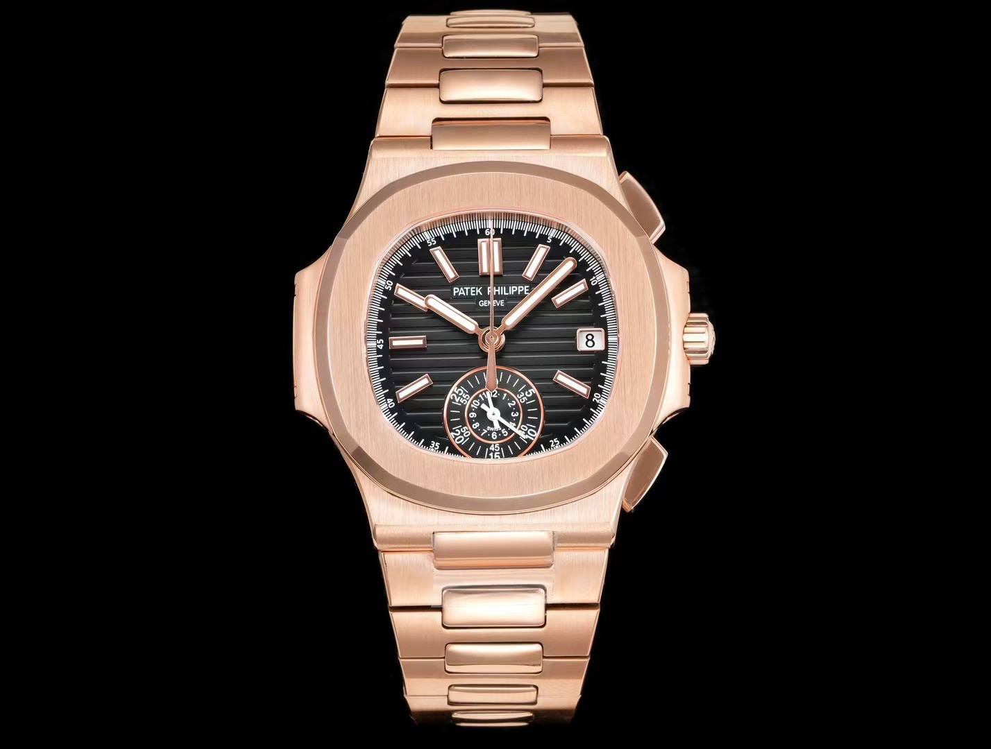 The watch measures 40.5mm and is the thinnest on the market at just 13.5mm. The cushion-shaped case features a brushed front and polished sides, creating a distinct, textured look and a refined feel. This showcases exquisite craftsmanship. The strap is custom-made, with each section featuring a polished diamond-shaped center section, showcasing a premium feel. The movement features the PP.CH28-520 ultra-thin integrated movement, displaying hours, minutes, seconds, date, and large-second chronograph functions. Its exceptional three-dimensionality enhances the movement's accuracy.
