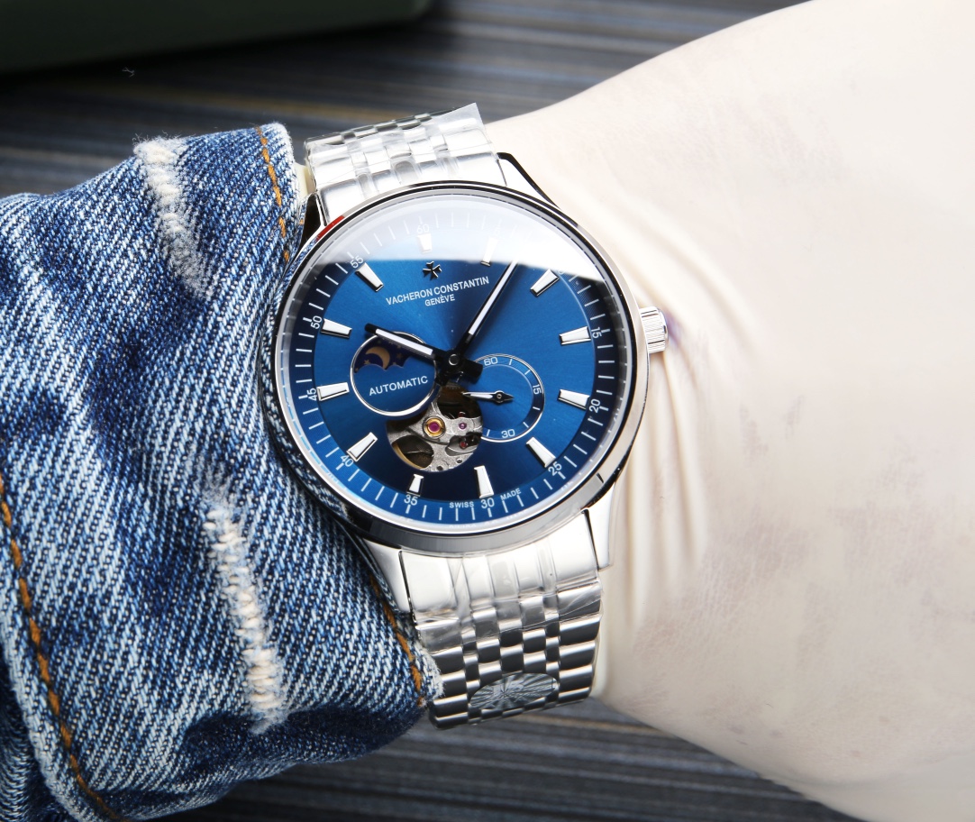 Powered by an imported 82S7 movement, this watch features a super A grade stainless steel case (exquisite craftsmanship, water-resistant to 5 degrees Celsius, suitable for swimming 🏊), a dial made of imported high-quality copper (exquisitely layered and dazzling under natural light), a 9-o'-the-clock personalized 24-hour/true moon phase display, a skeletonized design offering a clear view of the movement, and a 5-o'-the-clock small seconds display. It boasts a double-domed sapphire crystal with superior luminescence, an Italian leather strap, and a 40 x 11 mm case diameter. Water resistant to 5 degrees Celsius!
